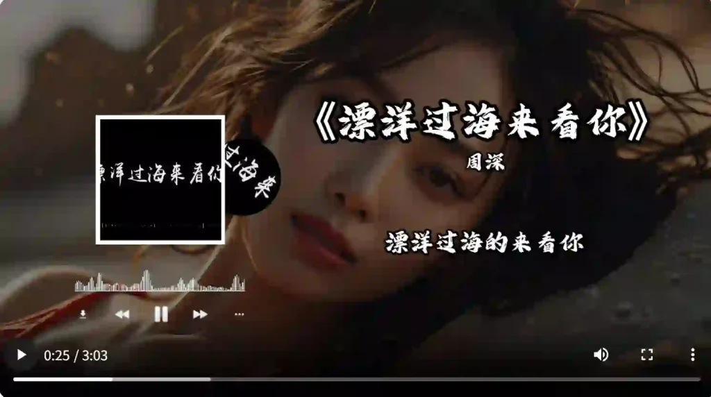 工作流只需要输入一个歌曲的名称和歌手名称,比如我们输入歌曲名称 “漂洋过海来看你”,演唱者我们选择“周深”版本,点击运行,经过30秒左右,《漂洋过海来看你》——周深版的MV我们就制作好了。效果如下,因视频较大,这里我只放一张截图,MV可以下载安装包查看。